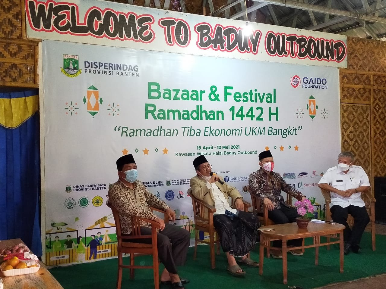 Serang, Banten—Gelaran Bazaar dan Festival Ramadhan 1442 H.,”Ramadhan Tiba, Ekonomi UKM Bangkit” resmi dibuka oleh Drs. M. Agus Setiawan, A.W., M.Si. selaku Kepala Dinas Pariwisata Banten, didampingi Muhammad Hasan Gaido selaku, Founder Gaido Foundation, Sukandar, Kepala Bidang Perindustrian Disperindag Banten, KH. Anang Azharie Alie, Ketua Presidium Forum Silaturahim Pondok Pesantren (FSPP) Banten,dan KH. Sulaiman Effendi, Ketua Insan Tani dan Nelayan Indonesia (INTANI).